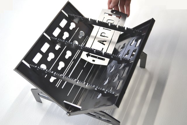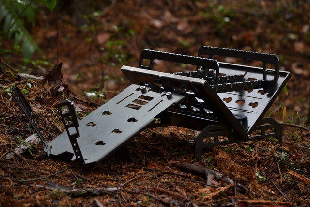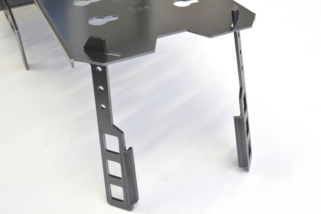 コンパクトな焚火台は沢山あります。我々もコンパクト性を最重要課題としております。しかし焚き火台そのものに拡張性を持たせる事でコンパクトな構造にも多様性を持たせております。また熱影響や拡張パーツの取付にも耐えうるよう、焚火台本体に板厚3.2mmの鉄板を採用。質実剛健+拡張パーツで末永く御愛用いただける事を願って開発しております。