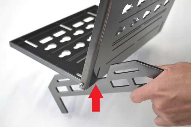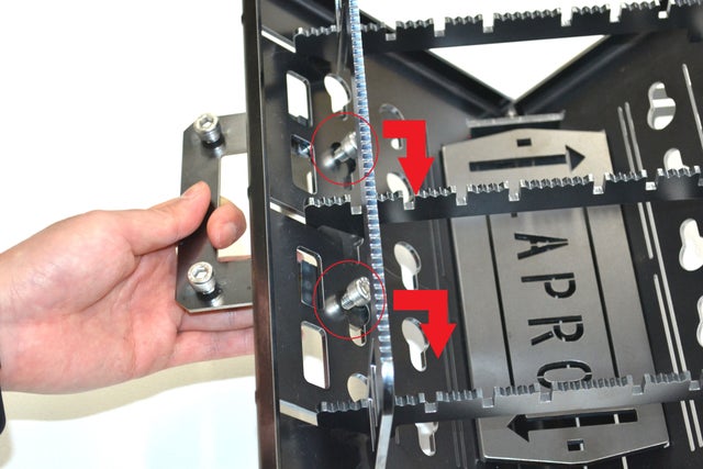 ①Mーハッチ(拡張パーツ取付金具)のボルトを緩め上段のキー溝に差し込みます。