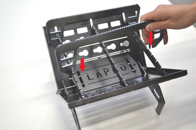 焚火台としては勿論、調理する際は幅の調整ができるブリッジ(五徳)を利用し調理器具の大小にも対応可能。