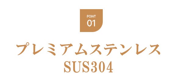 SUS304ステンレス : 錆びにくい材質で鉄の腐食や変形などを防いでくれます。