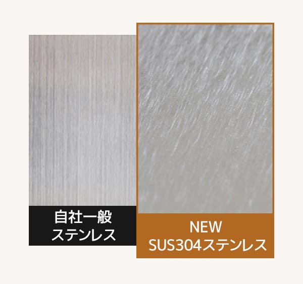 ステンレスSUS304を使用しています。一般のステンレス製まな板とは一味違う表面のキメが特徴です。