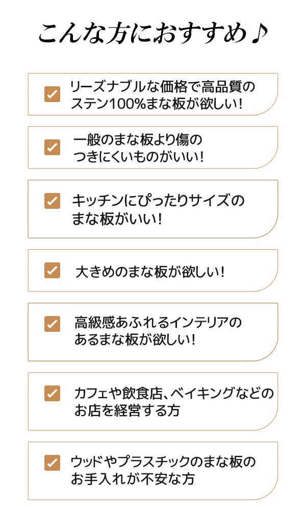 毎日使うまな板、衛生面でのお手入れで苦労されている方は、ステンレスのまな板を一度お試しください〜!SUS304の高クオリティーステンレスで独自に製作したプレミアムなまな板です。1.5mmと薄く軽いため、使い勝手がよく、お手入れも楽です。ぜひ、この機会にお見逃しなく⭐︎