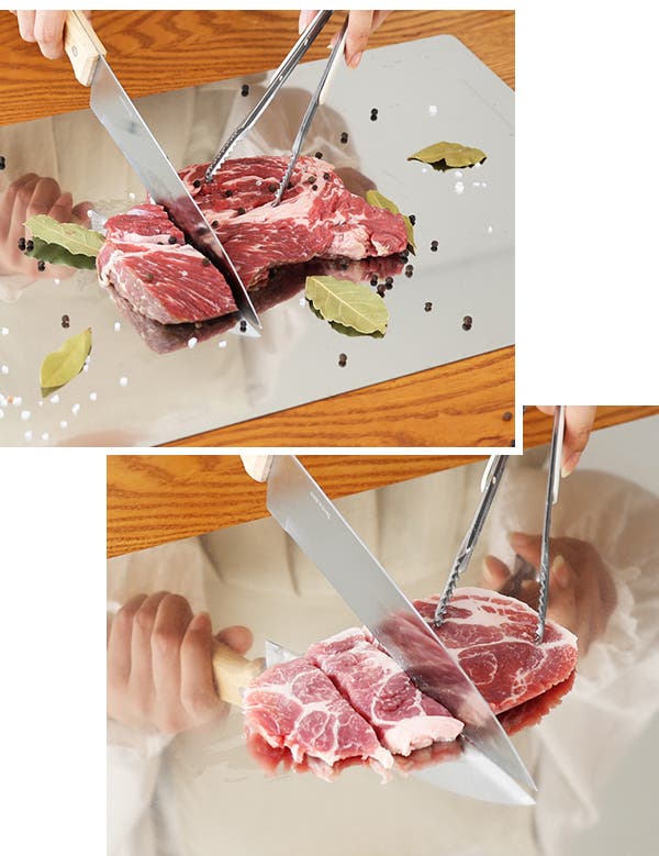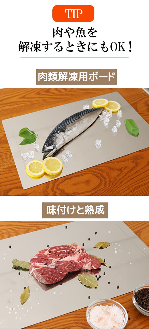 一般家庭の厨房で ! 肉類や魚などのニオイ移りが気になる食材にもステンレスまな板がおすすめです!