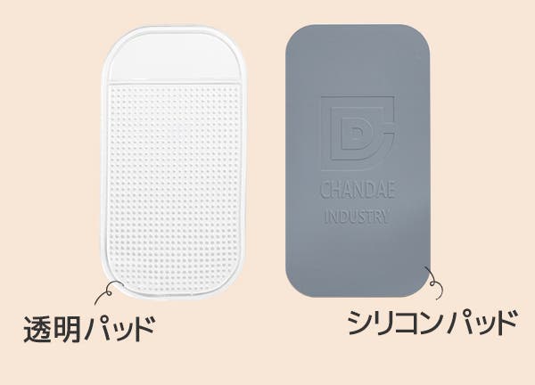接着力に優れたノンスリップパッド ! 2つのバージョン(計4枚)をお届けします。(透明パッド 2枚 & シリコンパッド 2枚 )