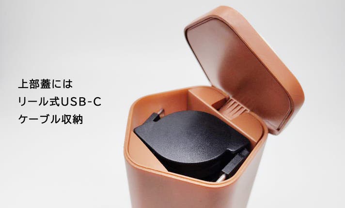 でも大丈夫♪チャージエブリーの上部蓋部分にリール式USB-Cケーブルを収納。