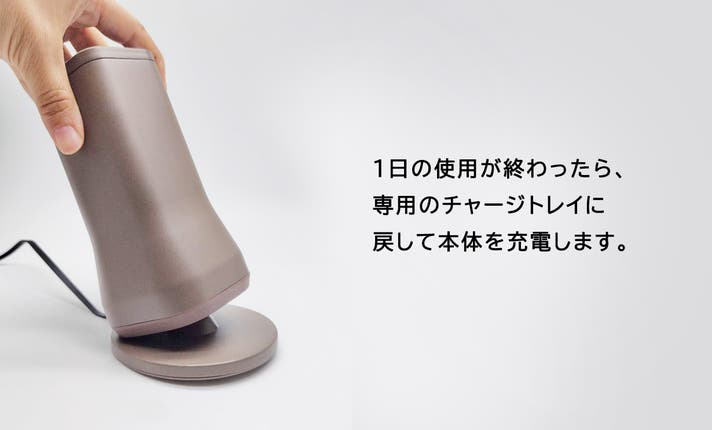 A.本体約800g、チャージトレイ約55g、リール式充電ケーブル約35gです。