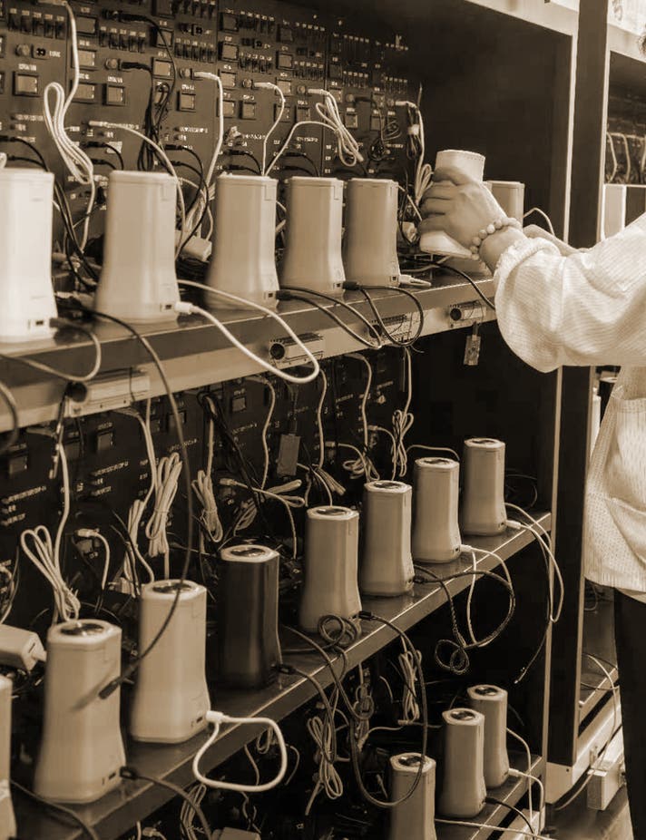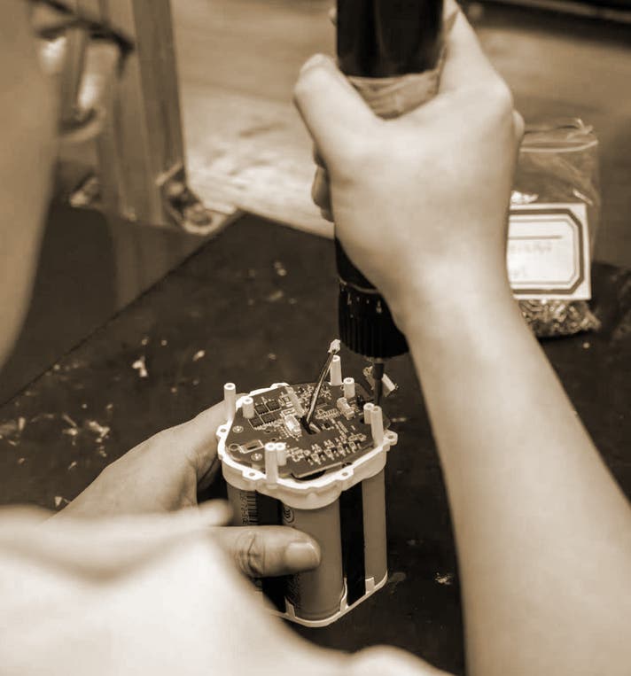 中国の工場で、『ポタミー』の基盤を手作業で組み立てています。