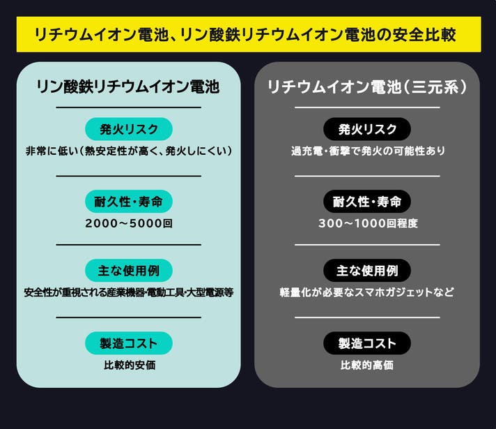 安定した性能と長寿命を兼ね備えた「リン酸鉄リチウムイオン電池」を採用しました。