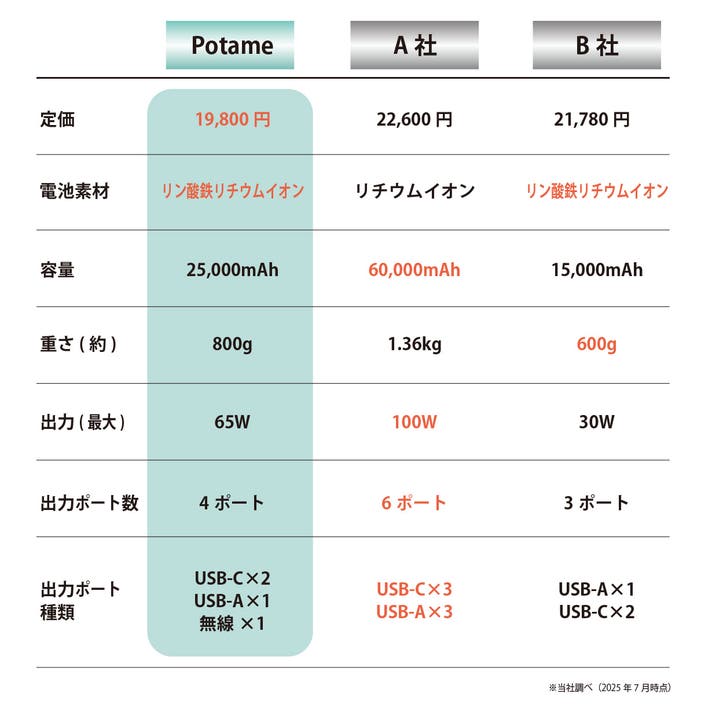 『ポタミー』は、低自己放電のリン酸鉄リチウムイオンバッテリーを搭載。