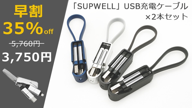 早割 35%OFF「SUPWELL」USB充電ケーブル 2本セット