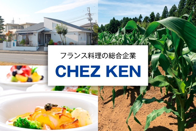 原点でもあるレストラン経営だけでなく、千葉県八街市のシェ・ケン農園では野菜の生産、さらにはそごう千葉店のフレンチ総菜販売、全国のホテル・飲食業に向けたメニュー開発やフレンチ食材・加工品の卸しなど、フランス料理の総合企業として幅広い事業展開を行っています。