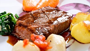 国産牛ロースのグリエ…ロリエ、タイム、エシャロットの香りを楽しむ赤ワインソースが絶品。柔らかな牛ロースをお好みの焼き加減で。
