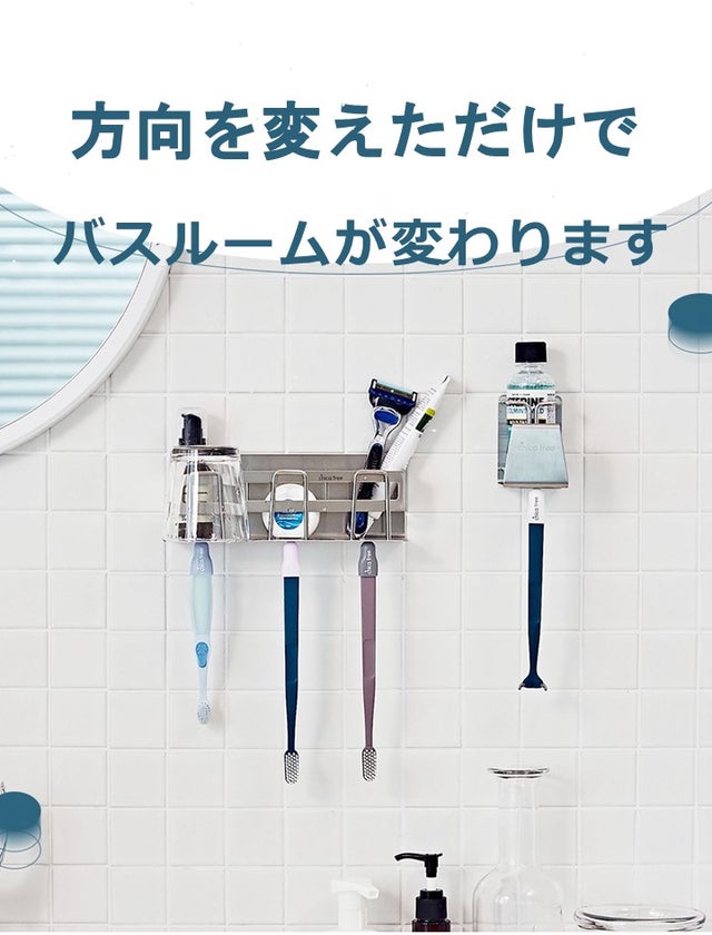 洗面台を整理しようと準備した歯ブラシスタンドでむしろ狭くなってしまいませんか?chicafreeは壁に取付けて使用するので、空間を効率よく使用して、歯ブラシ、歯磨き粉、コップなど、様々な物を整理できます。