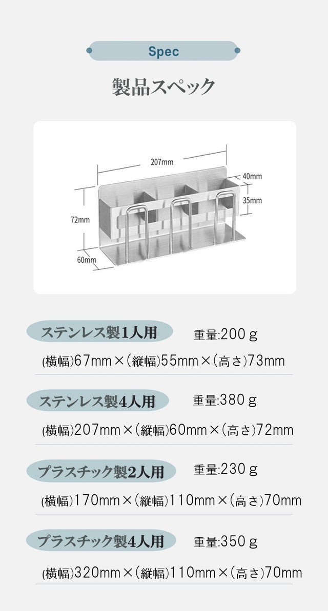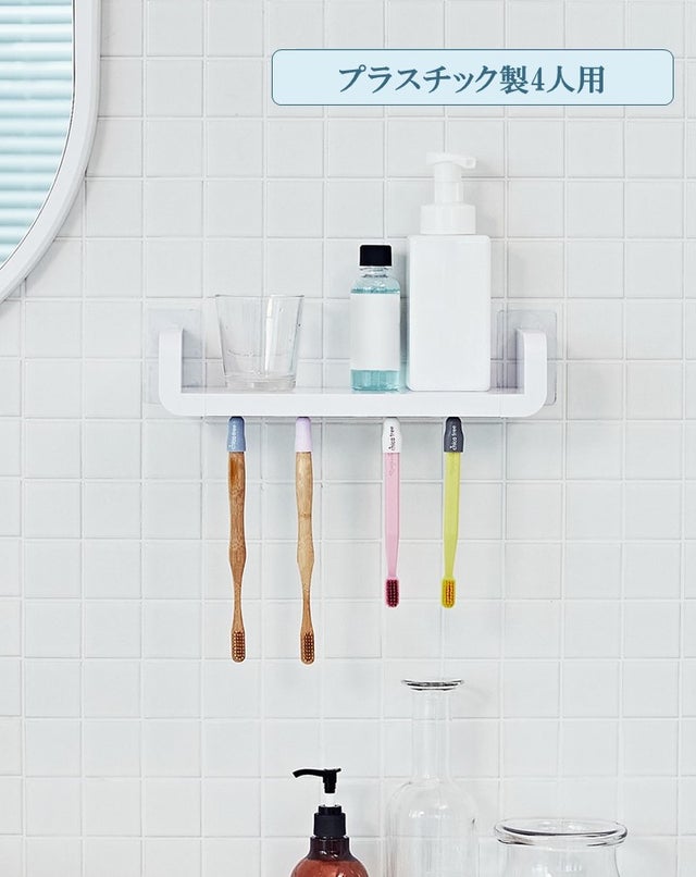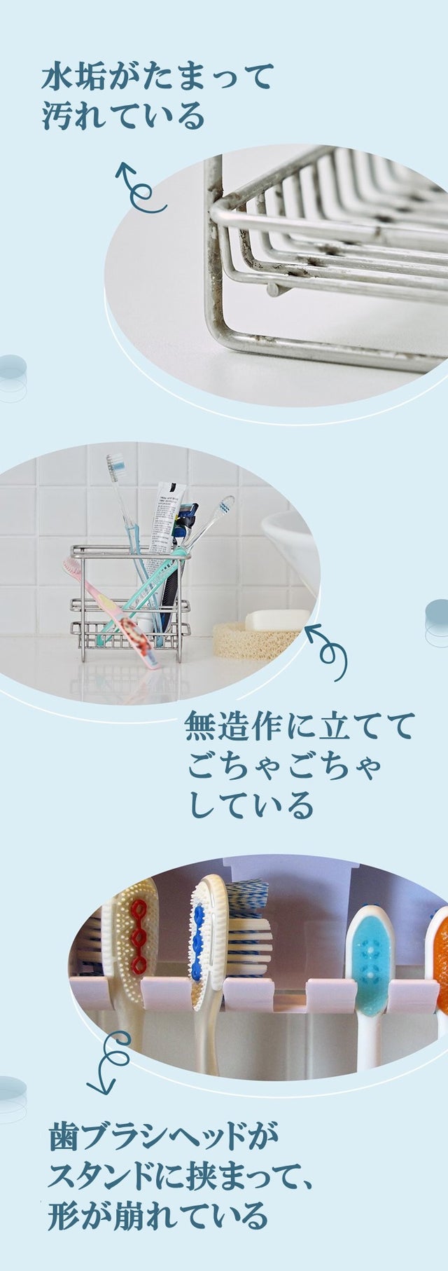 - 歯ブラシスタンドの掃除しづらい水垢、ヌメリ、カビの心配がなくなります。