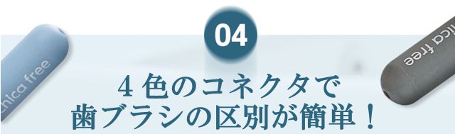 歯ブラシを変えるときも、コネクタを付け替えるだけです。誰の歯ブラシか混乱することはありません。