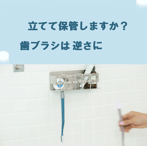今までの歯ブラシスタンドは歯ブラシの毛先がなかなか乾かず、歯ブラシのハンドルから水滴が流れ落ちて、水気がたまり水垢がが付きヌメリ出してしまうことも・・・少し掃除をさぼるとなかなか汚れが落ちなくなってしまいますしかし、chicafreeはコネクターを付けて逆さに吊るすことで、素早く乾燥します。