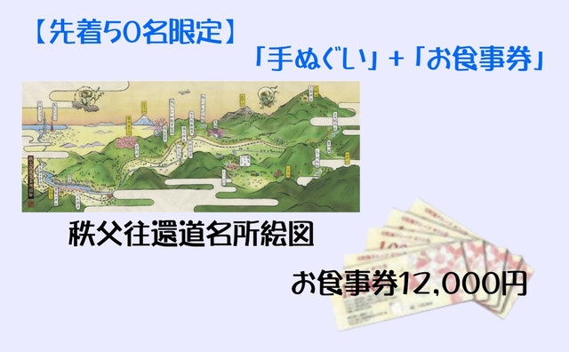 【限定50名】秩父往還道名所絵図「手ぬぐい」+「お食事券12,000円分」