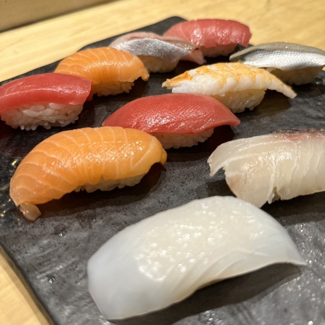 中トロ・マグロ赤身・イカ・サーモン・赤エビ・真鯛・ノドグロ・穴子・ホタテ・ヒラメ