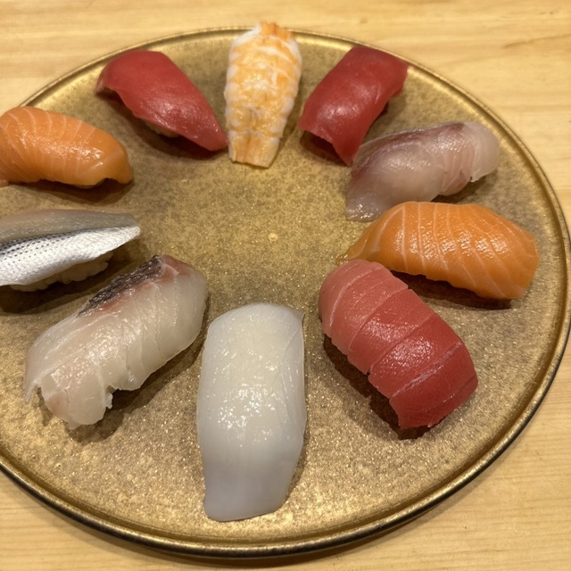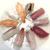 中トロ・マグロ赤身・イカ・赤エビ・真鯛カンパチ・穴子・小肌・サーモン・エンガワ