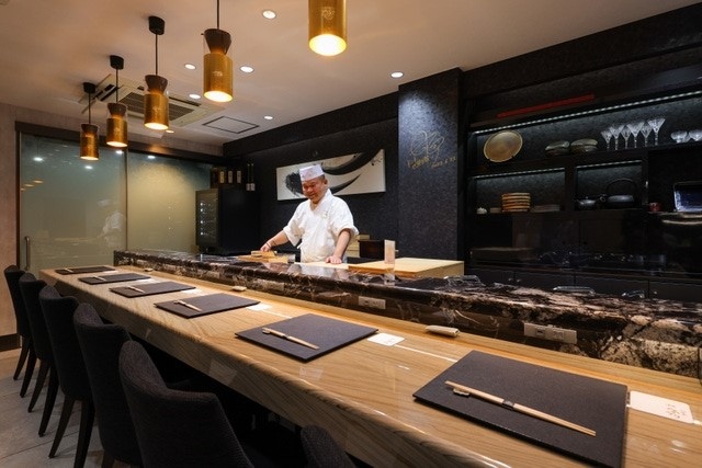 「六本木鮨ちかなり」では、総大理石のカウンターから繰り出される極上のすしをお楽しみいただけます