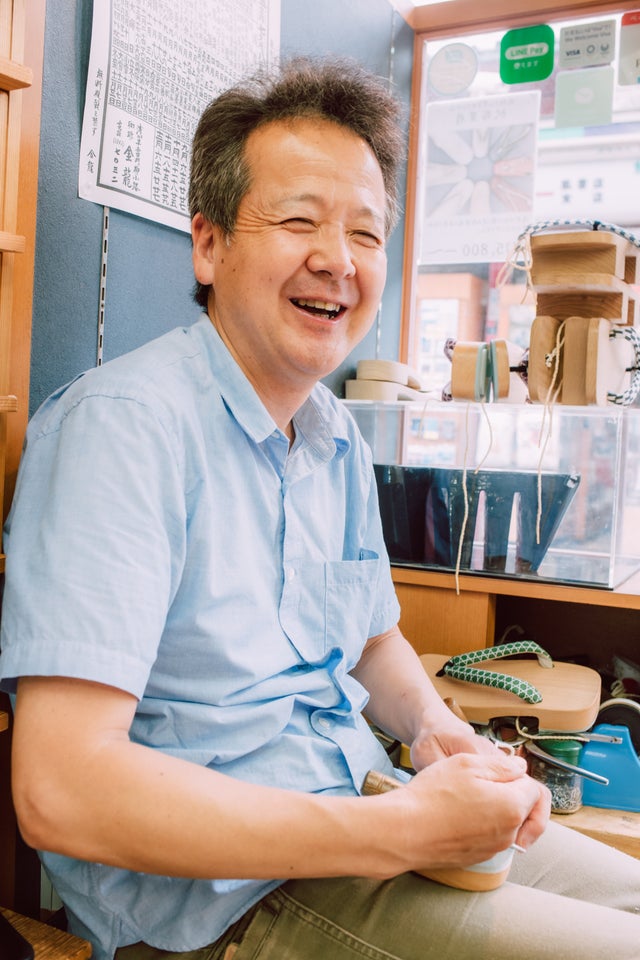 浅草仲見世で二代目と三代目の親子二代で常に新しい技術を取り入れ伝統技術と融合させ、今までにない新しい履物を模索し続けています。