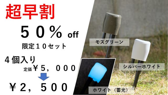 本製品は、怪我の防止を目的としていますが、本製品を装着したことにより、一切怪我をしないことを保証するものではなく、あくまで、ペグに体の部位を打ち付けた際の怪我の程度を軽減させるものです。 ホワイト(蓄光タイプ)の光る時間の長さについては、気象条件(日中の明るさ)や季節(日の入り時間)などの条件によって異なりますので、あくまで目安としてください。 また明るさについても視力などによっても見え方が変わりますので、商品写真とは見え方が異なる場合がありますのでご了承ください。 本文中に記載させていただいたスケジュールは、あくまでプロジェクト公開時点の予定です。 応援購入の性質上、配送遅延のおそれがございます。 原則として、配送遅延に伴う応援購入のキャンセルはできませんが、 リターン配送予定月から 3ヶ月 を超えた場合には、希望者に限りキャンセルにて対応させていただきます。