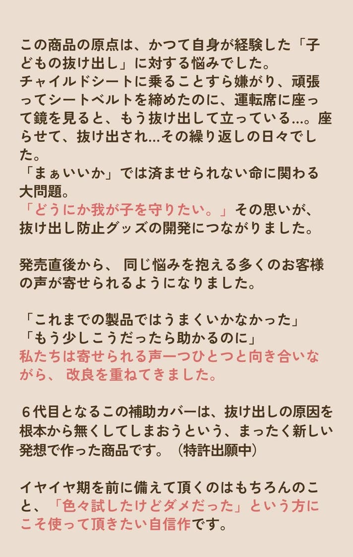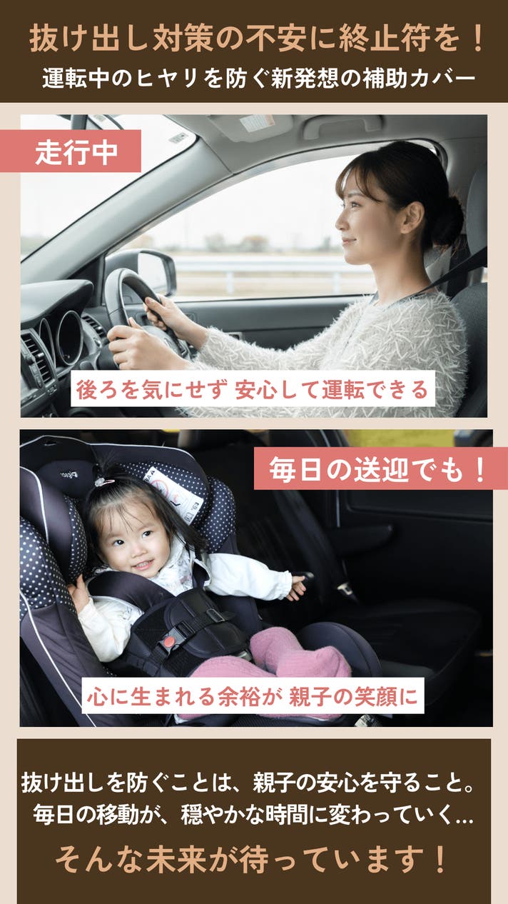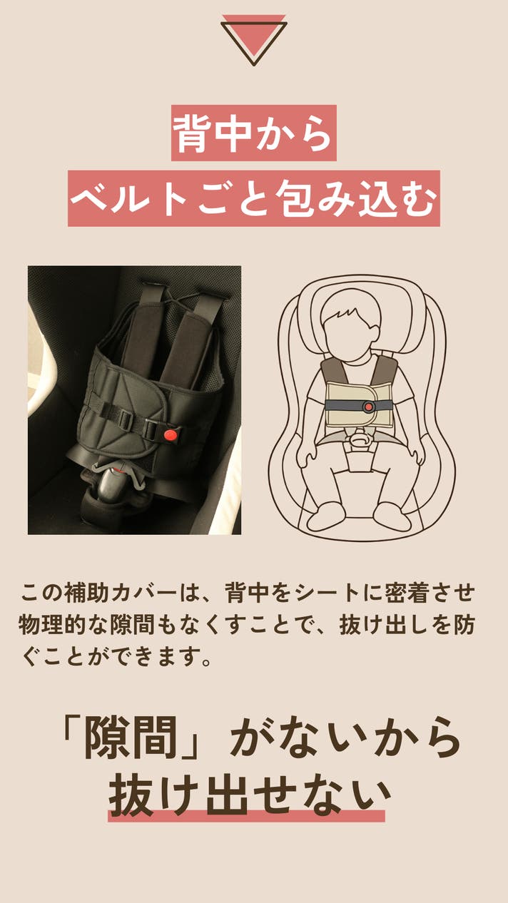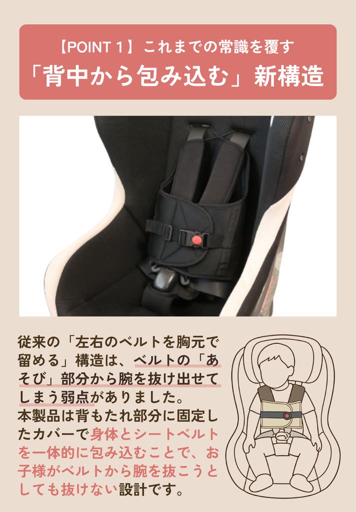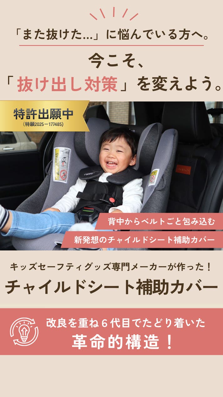 - ママたちの声から生まれた、隙間を無くして腕抜けを防ぐチャイルドシート補助カバー