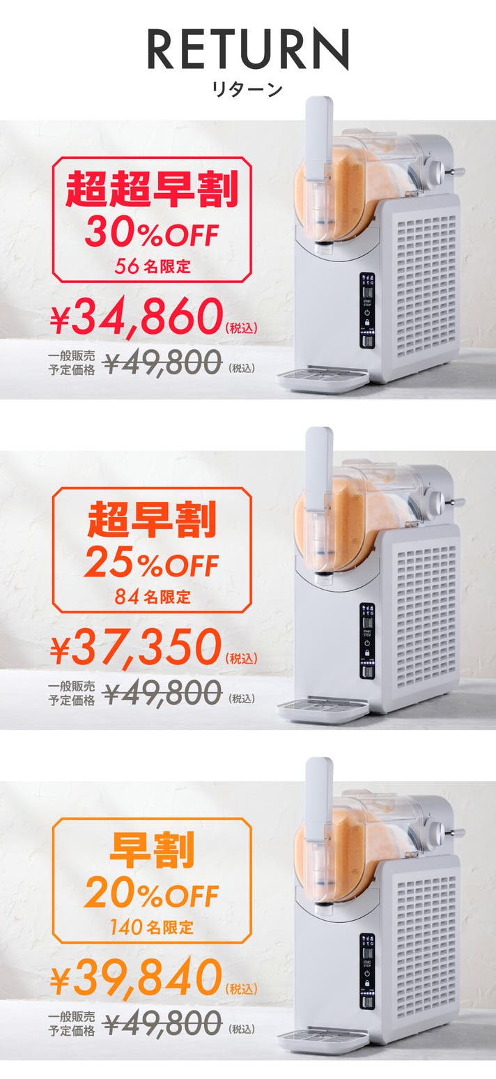 「Makuake(マクアケ)」は、実行者の想いを応援購入によって実現するアタラシイものやサービスのプラットフォームです。このページは、 プロダクトカテゴリの 「入れるだけ、手間ゼロ!たった30分で極上スイーツが完成する本格フローズンメーカー」プロジェクト詳細ページです。