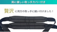 - 肩を守る厚さ1.6cmのショルダーパッド、重さに耐える600Dの極厚生地、中敷きで自立する