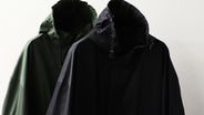 ・後ろ裾が燕尾状に二股に分かれ、ドローコードで絞って固定できる独特のデザイン