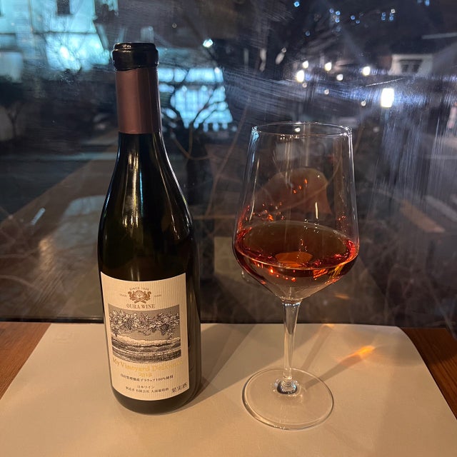 オレンジワインは、私の出身地である山形県の「大浦葡萄酒」がつくった『マイヴィンヤード デラウェア』。シェリー酒やドライフルーツのように上品な香りと味わい、ブドウの凝縮された旨味を感じられる逸品です。