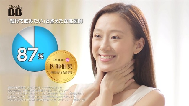 「チョコラBBリッチセラミド」を「DoctorsMe」に登録している女性医師101名にサンプリングして、アンケート調査したところ、87%の女性医師の方から「継続して飲用したい」と回答していただき、「DoctorsMe」医師推奨商品に認定していただきました!