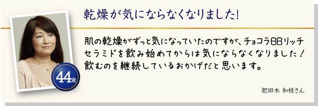 ですから、自分を鏡で見た時、嬉しくなれるような潤い肌をキープするには、毎日手軽にセラミドを摂取できる「チョコラBBリッチセラミド」を、コツコツと続けていただくことが近道なのです。