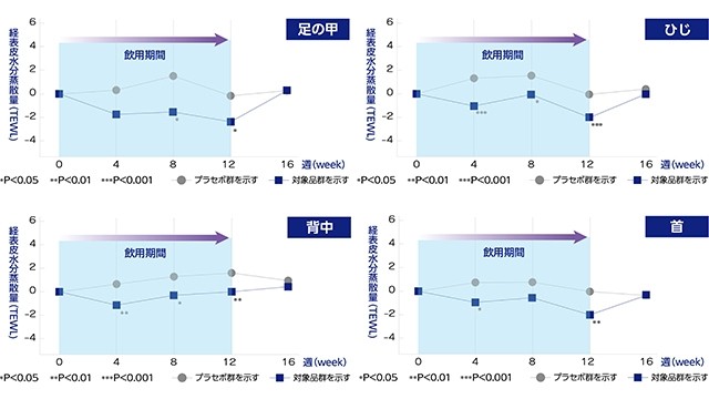 A:肌の潤いを逃しにくくする機能があることが証明されています。肌の乾燥が気になる方に特にお飲みいただきたい商品です。