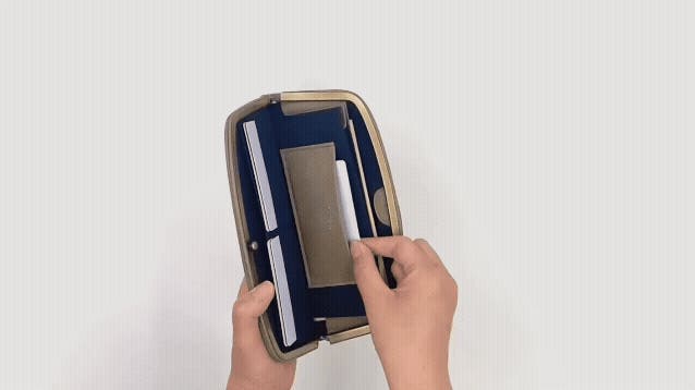 コインケースをセットした場合は中に仕切りポケットがある状態になります。あらかじめ良く使うカード等を入れておくと大変便利です。コインを取り出す1アクションでコインとカード両方にすばやくアクセスすることができます。一般的な長財布のコインポケットと比べても時短で使いやすさにつながります。