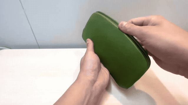 見た目はスリム、開ける時はワンタッチでパカッと大きく開きます。そのため中も見やすく、見つけやすい。手が奥まで入るのでサッと取り出しやすくなっています。