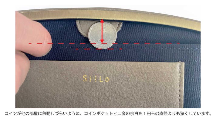 また財布を振ってもなるべく他の所に小銭が移動しづらいように、コインポケットの深さを調整しています。