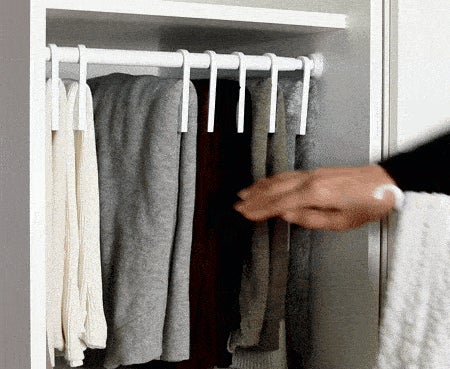 C-オーガナイザーを実際に使用してみました。 朝の出勤時、着替えにかかる時間が確実に減り、服が崩れ落ちてきたり、散らかってクローゼットの中がごちゃごちゃになることがなくなりました。 横並びに収納でき、服にシワがつきにくく、カラー別に収納すれば気分まで良くなるアイテムです。