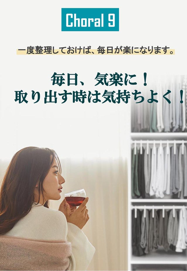 初めまして。CORAL9マーケティングチームです。 日常生活での整理整頓をより楽にするアイデア、そしてそれをさらに輝かせるほど徹底した品質の哲学。それがまさにコーラル9が追求する価値です。これまでクローゼットの整理がお悩みだった方は、ぜひC―オーガナイザーをお試しください。