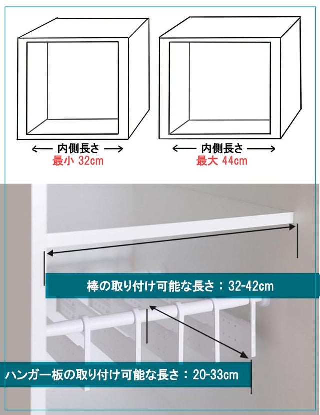 ■ ハンガー板の取り付け可能な長さ : 20-33cm
