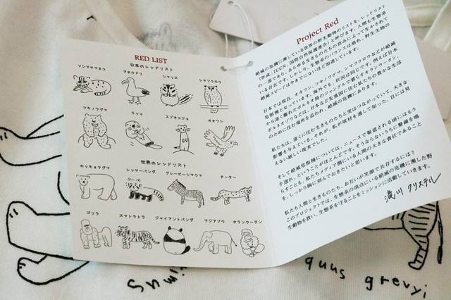 「レッドリスト」に登録の世界の絶滅危惧種の動物たちをデザインした、財団の活動「PROJECT RED」を支援するオリジナルTシャツです。