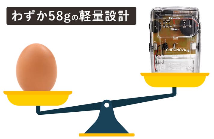 100年前からあるラジオの仕組みを、現代の「スケルトンボディ」で包みました。 中身が透けて見えるデザインは、単なる流行(レトロ)ではありません。