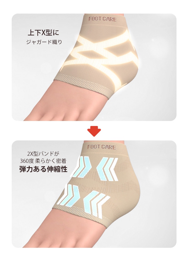 弾力のあるX型のジャガード織りが、足首を心地よく保護してくれます。
