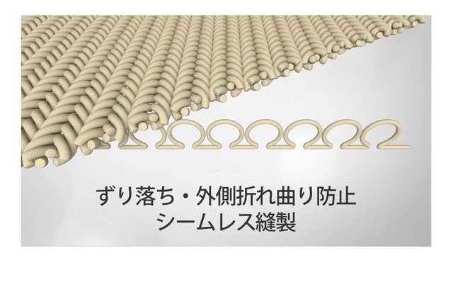 特殊な編機だけが可能なシームレス縫製で、高密度の伸縮性を実現。