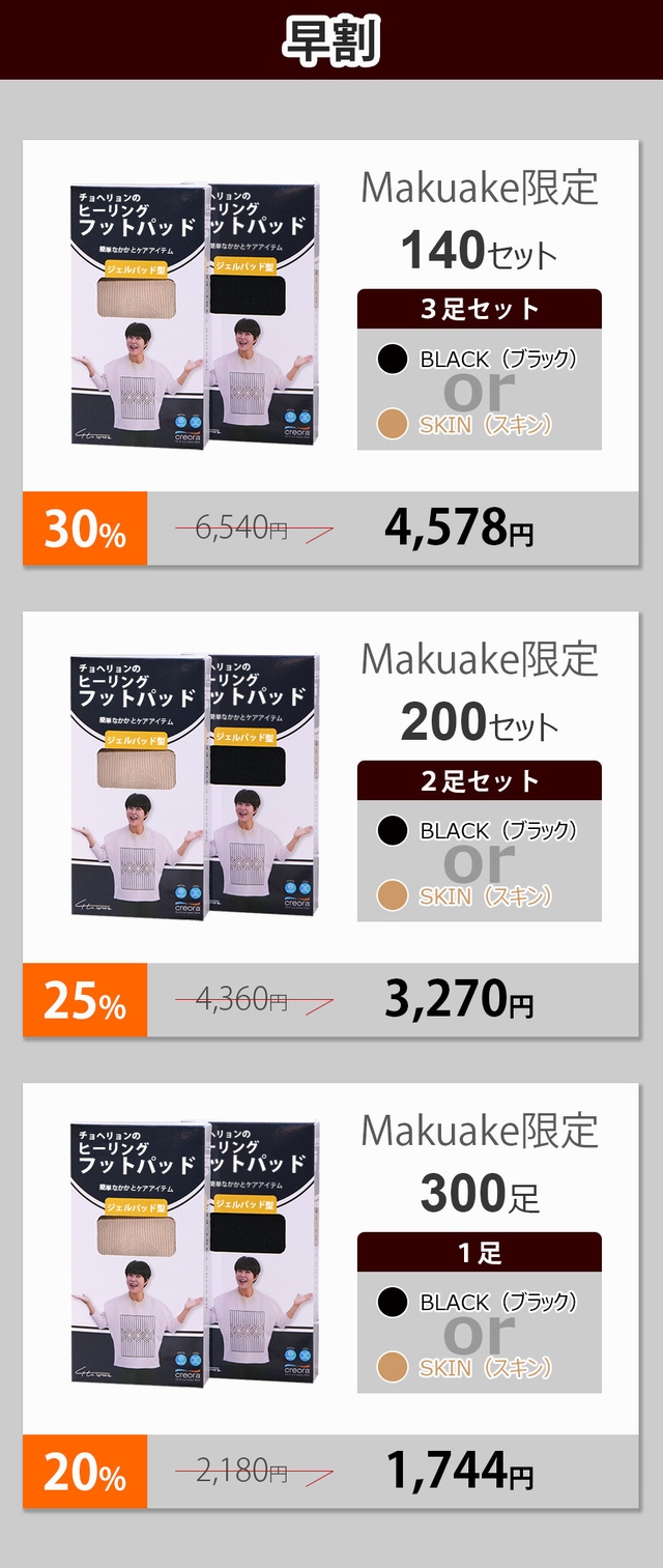 「Makuake(マクアケ)」は、実行者の想いを応援購入によって実現するアタラシイものやサービスのプラットフォームです。このページは、 コスメ・ビューティーカテゴリの 「靴や靴下の中でもこっそりかかとケア!サンダルも自信持って履けるかかとへ!」プロジェクト詳細ページです。