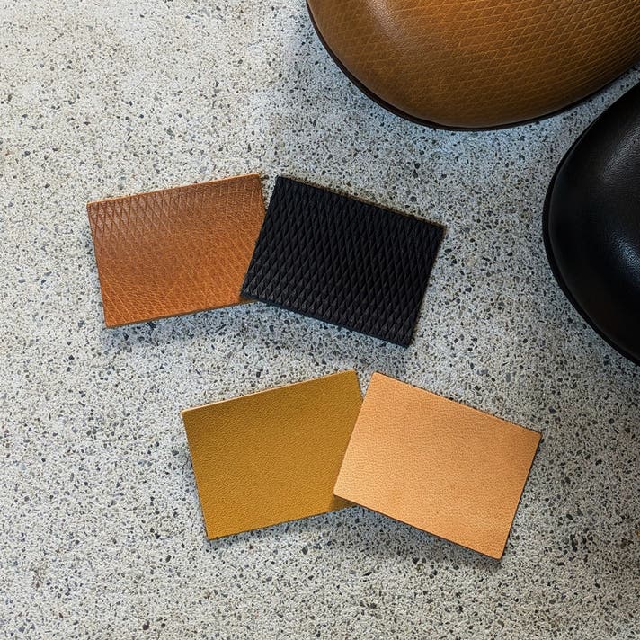 色選びなどに迷われ、革の実物をご覧になられたい方には、今回甲革に使用している革一式のカットサンプルを、普通郵便でお送りさせていただきますので、お気軽にお問合せください。