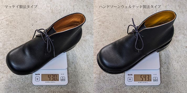 ・ ハンドソーンウェルテッド製法タイプ:約543g。
