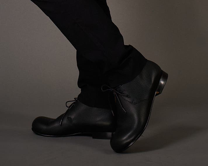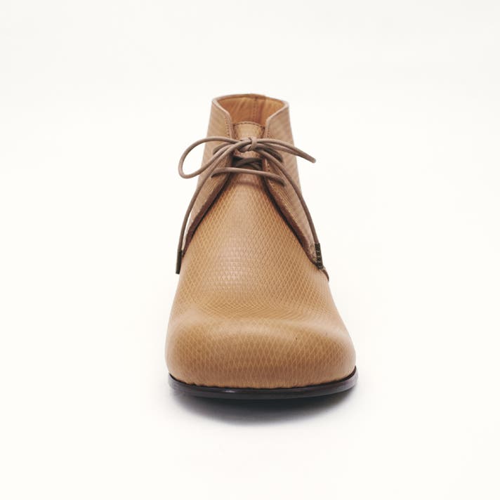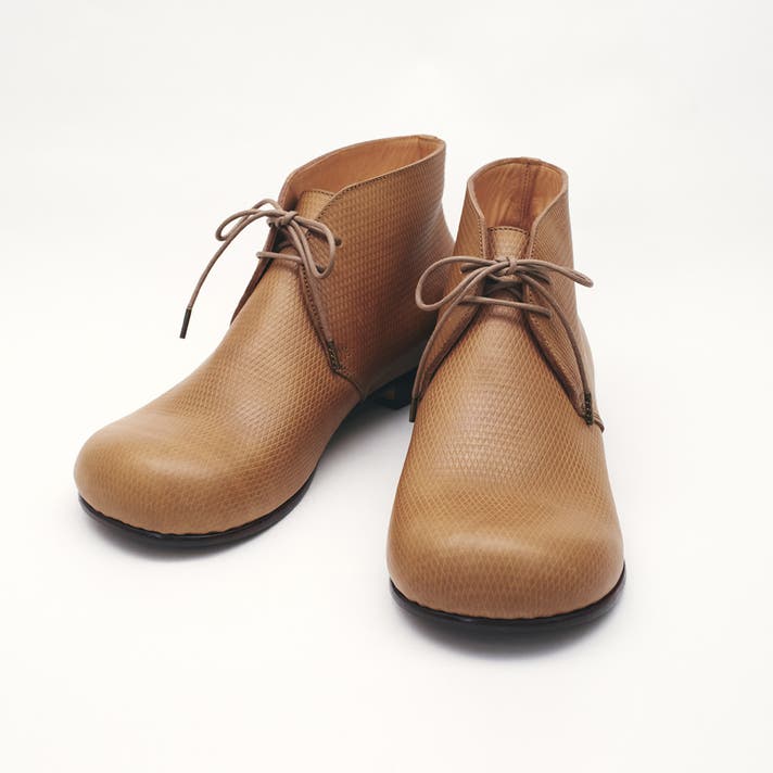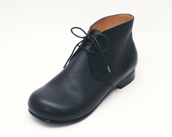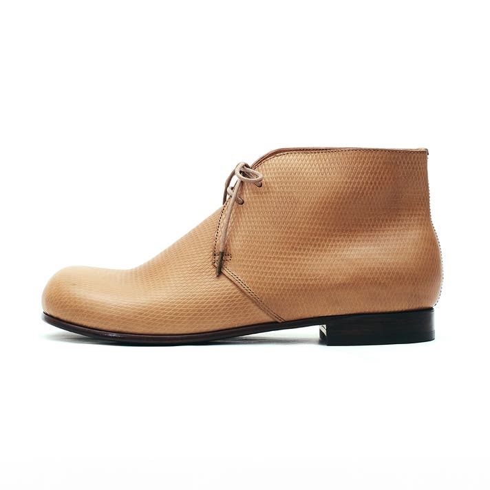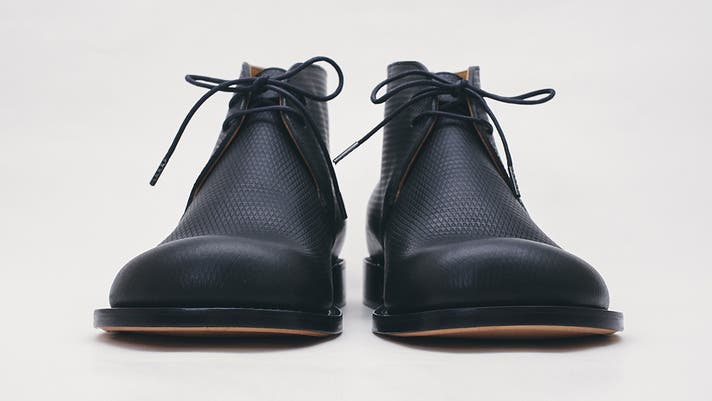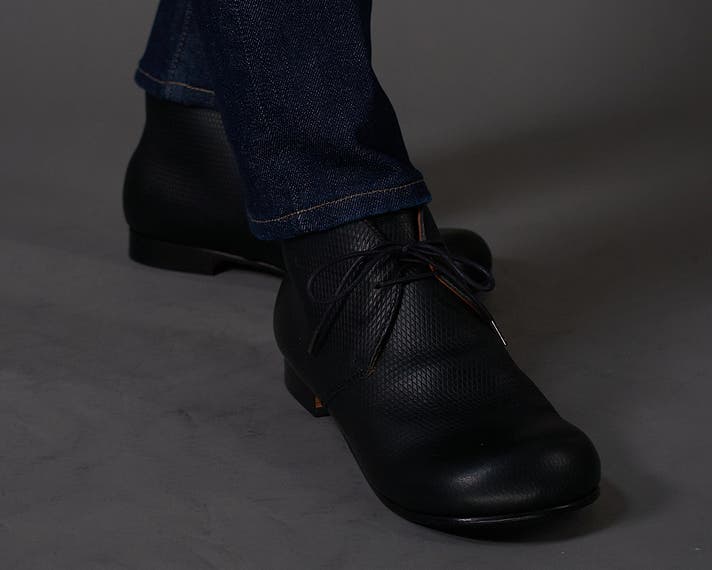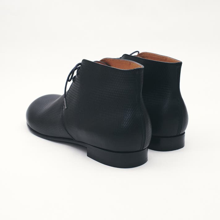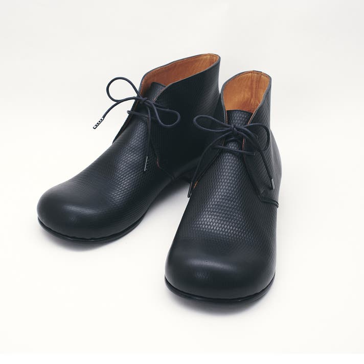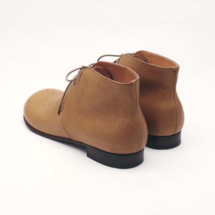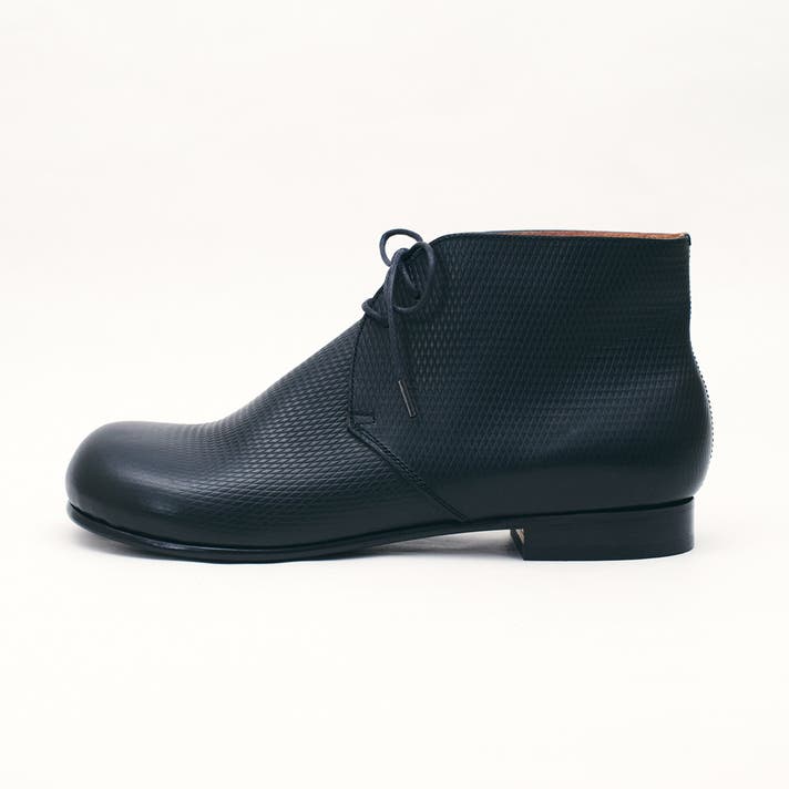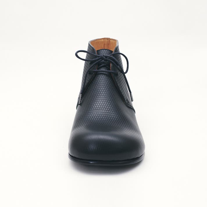 丸みのあるトウがチャッカの端正さをやわらげ、日常に馴染む表情をつくります。切り返しを抑えたシンプルな面構成は、レザーの質感をまっすぐに引き立てます。