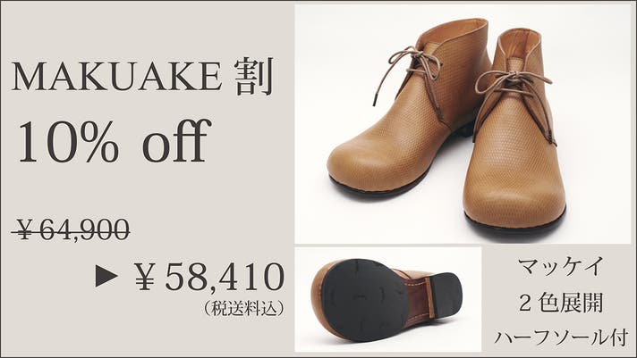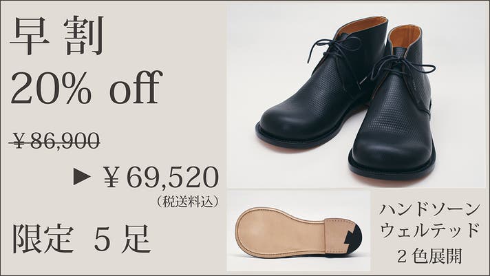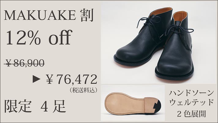 ※リターン購入欄では、価格順の都合上、「早割・Makuake割ハンドソーンウェルテッド製法タイプ」は最後尾にまとめて表示されますのでご注意ください。(PC表示だと最下部、スマホ表示だと一番右に表示されます)