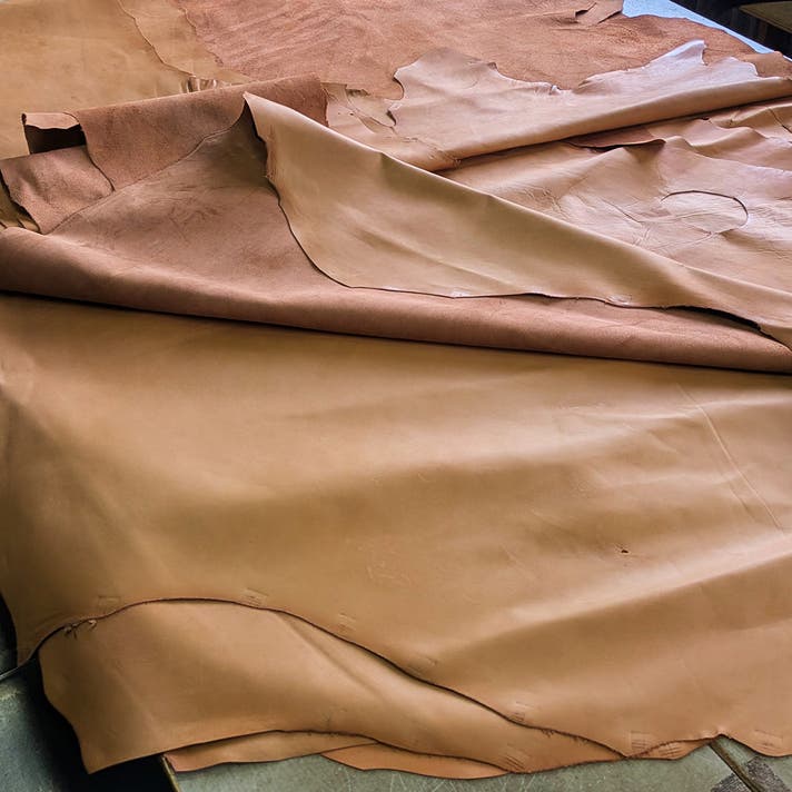 製作の経験上、天然素材ゆえ、製作途中(主に革を引っ張る"つりこみ"作業後)に微細なキズが発見されることがございます。目立つ箇所ではやむを得ず作り直しをいたしますので、その際は納期調整のご相談をさせていただきます。(キズやシミなどの個体差は、天然素材ならではの特性としてご理解いただけますと幸いです)